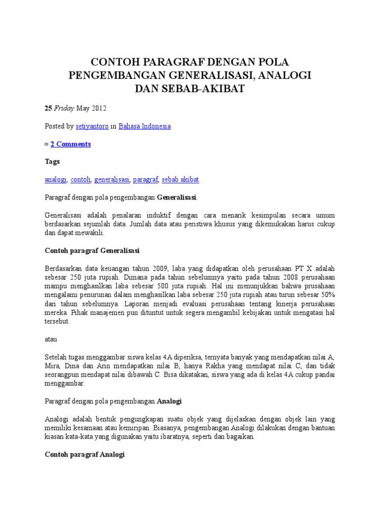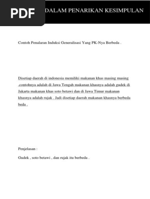 Jika si pelaku mengamati pola tersebut, dia akan mengamati bahwa jumlah sisi dalam bentuk meningkat satu dan karenanya generalisasi pola ini. Qolbi ridho putra npm : Pemakaian bahasa indonesia deseluruh daerah diindonesia dewasa ini belum dapat dikata seragam. Kesimpulan generalisasi ini didahului dengan penalaran generalisasi. Jumlah data atau peristiwa khusus yang dikemukakan harus cukup dan dapat mewakili.